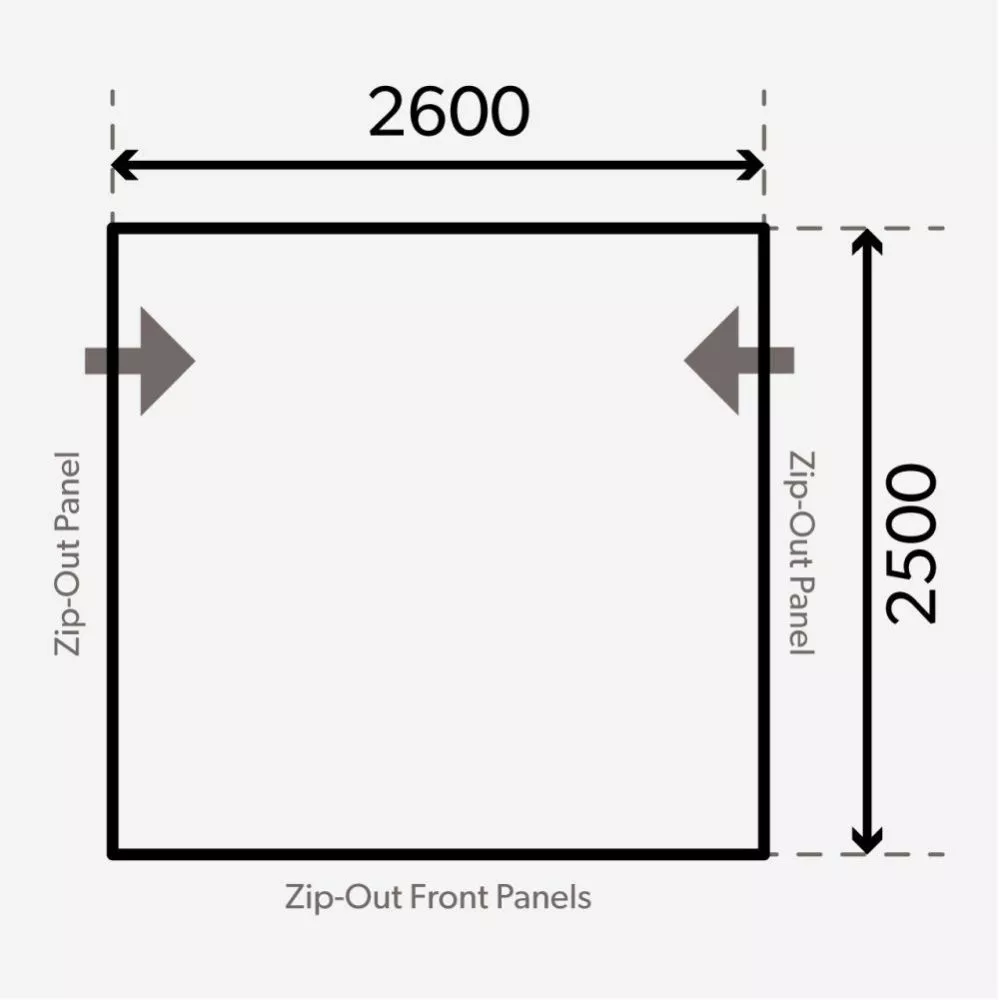 optional erhältliches Front-Vordach, Side Wing und Vorzelterweiterungen