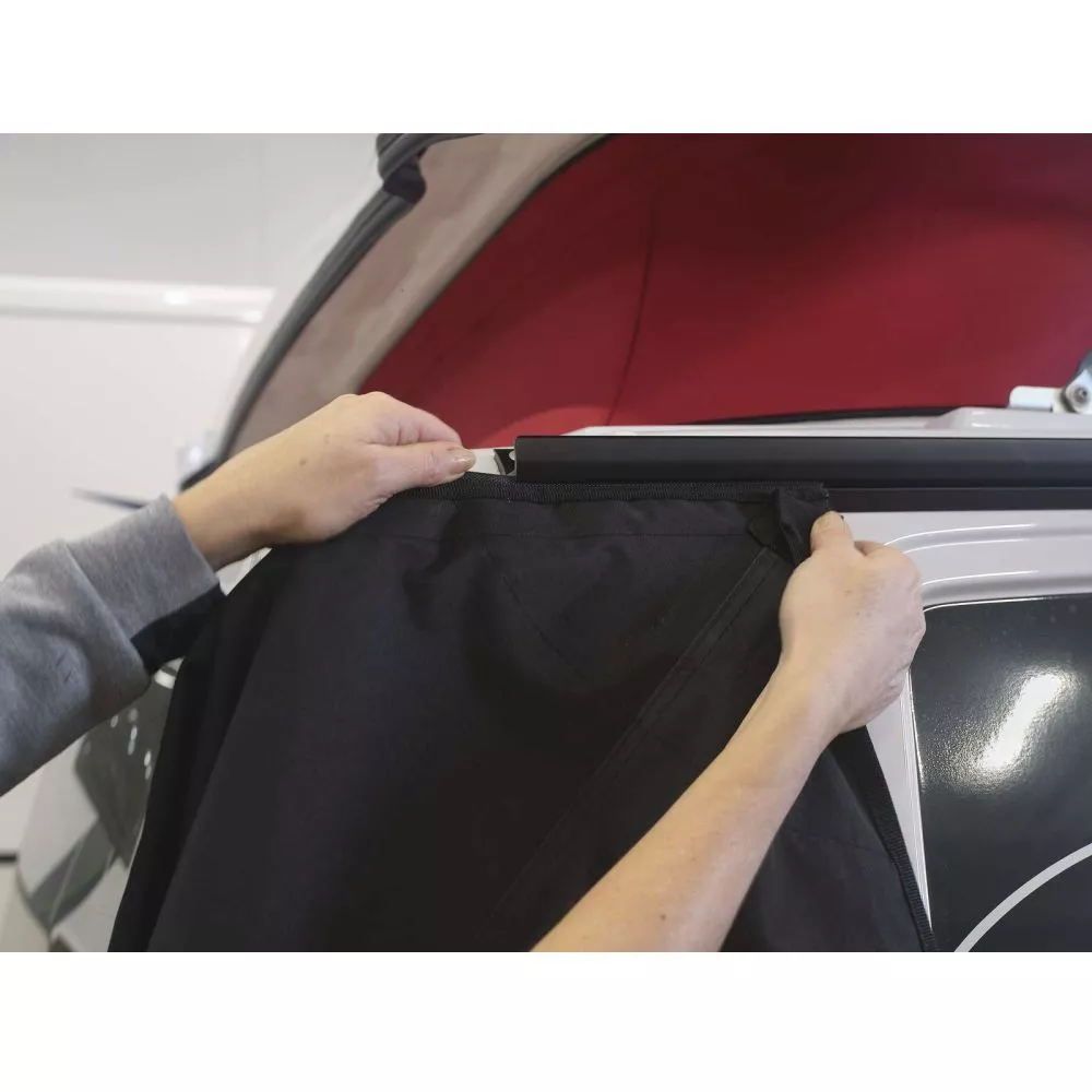 Dieses Isabella Sonnendach wurde speziell für Campingbusse und Vans wie z.B. der VW California, und andere Fahrzeuge gleichen Typs konzipiert. Es ist passend für alle Fahrzeuge mit einer maximalen Höhe von 196 cm und sogar für einen Eriba Touring Wohnwagen.