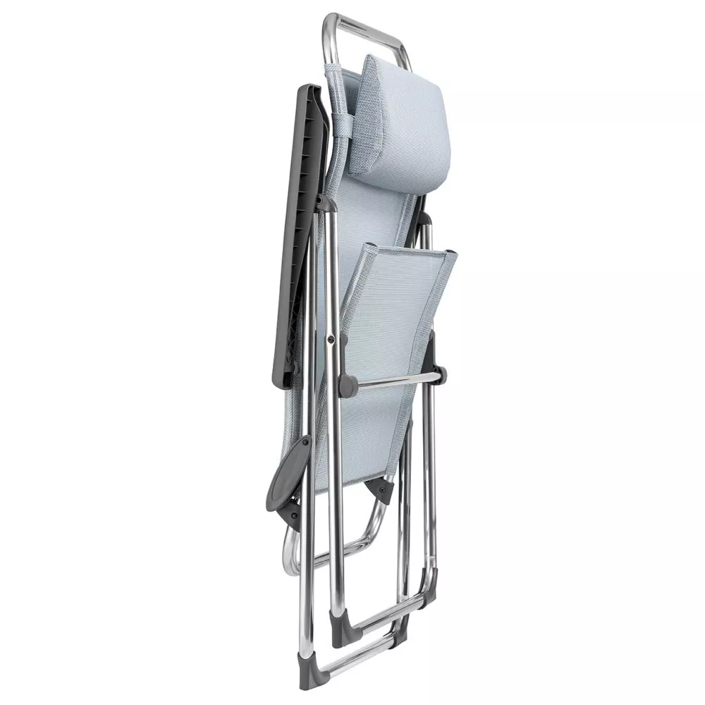 Der Campingstuhl Alu Cham XL von Lafuma erscheint gleich mehrfach mit XL-Komfort. Die Sitzfläche ist ideal für grosse Camper, hinzu kommt die extra hohe und ergonomisch gestaltete Rückenlehne, die Unterstützung im Lendenbereich liefert. In 5 Positionen ist die Rückenlehne durch einfache Bedienung an den Armlehnen in der gewünschten Position einstellbar. Ein solides korrosionsfreien Gestell und der hochwertige Bezug aus Batyline Iso-Gewebe runden die Ausstattung des exklusiven Klappstuhls angemessen ab.