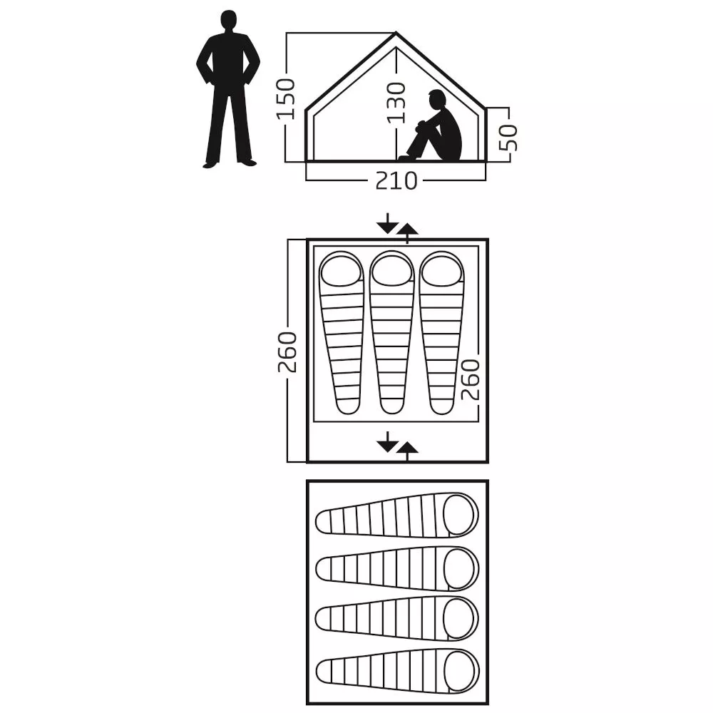 Überzelt: Technische Baumwolle, 65% Polyester, 35% Baumwolle, Gewicht: 210 g/m², Wassersäule: 350 mm