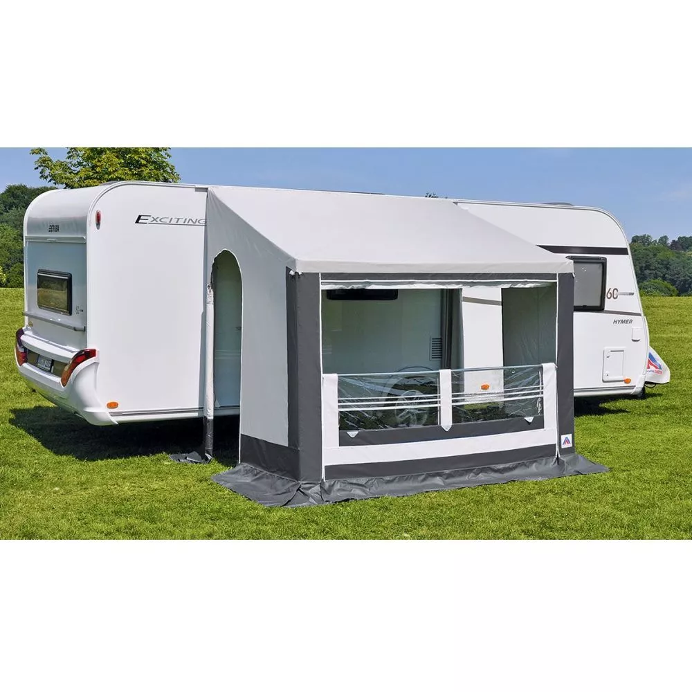 Das Wohnwagenvorzelt Hahn Zelte Hof ist Ihr idealer Begleiter in den Wintermonaten. In 4 verschiedenen Grössen erhältlich, bietet dieses Zelt einen geschützten Bereich vor Ihrem Fahrzeug um Ihr Equipment unterzubringen. Mit Eingängen in beiden Seitenwänden und einer komplett herausnehmbaren und zur Veranda (mit optionalen Verandastangen) abklappbaren Vorderwand hält dieses Zelt aufgrund des strapazierfähigen Materials den Umwelteinflüssen stand.