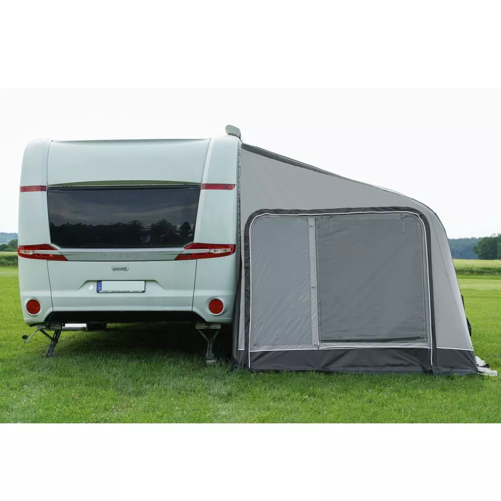 Wenn du doch noch etwas Platz für Campingutensilien oder eine Schlafmöglichkeit für Gäste brauchst, kannst du einen optionalen, aufblasbaren Seitenanbau links am Westfield Ceres befestigen. Zudem besteht durch die verbesserte Anschlussmöglichkeit die Möglichkeit dein Vorzelt direkt mit dem optionalen Sonnendach Westfield Canopy Shady Pro zu verbinden. Dadurch entsteht eine überdachte Terrasse, die vor dem Wohnwagenvorzelt weiteren Platz zum Aufhalten und Entspannen bietet.