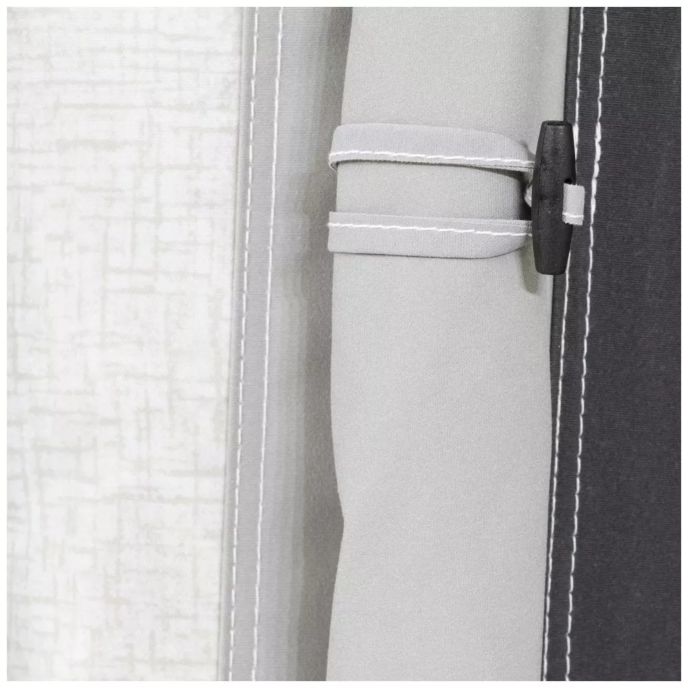 Die mit Reissverschluss verschliessbaren Aussenrollos bieten nicht nur mehr Privatsphäre im Vorzeltinneren sondern dienen während deiner Abwesenheit auch als Schutz vor neugierigen Blicken. Um während der Abwesenheit und bei geschlossenen Aussenrollos stickige Innenluft zu vermeiden, verfügt dieses Wohnwagen-Vorzelt über ein integriertes, aufblasbares Vordach mit Apex-Netzbelüftung. Durch den Schutz des Vordachs gelangt über diese praktische Belüftungsmöglichkeit beispielsweise auch an regnerischen Tagen jederzeit frische Luft nach innen.