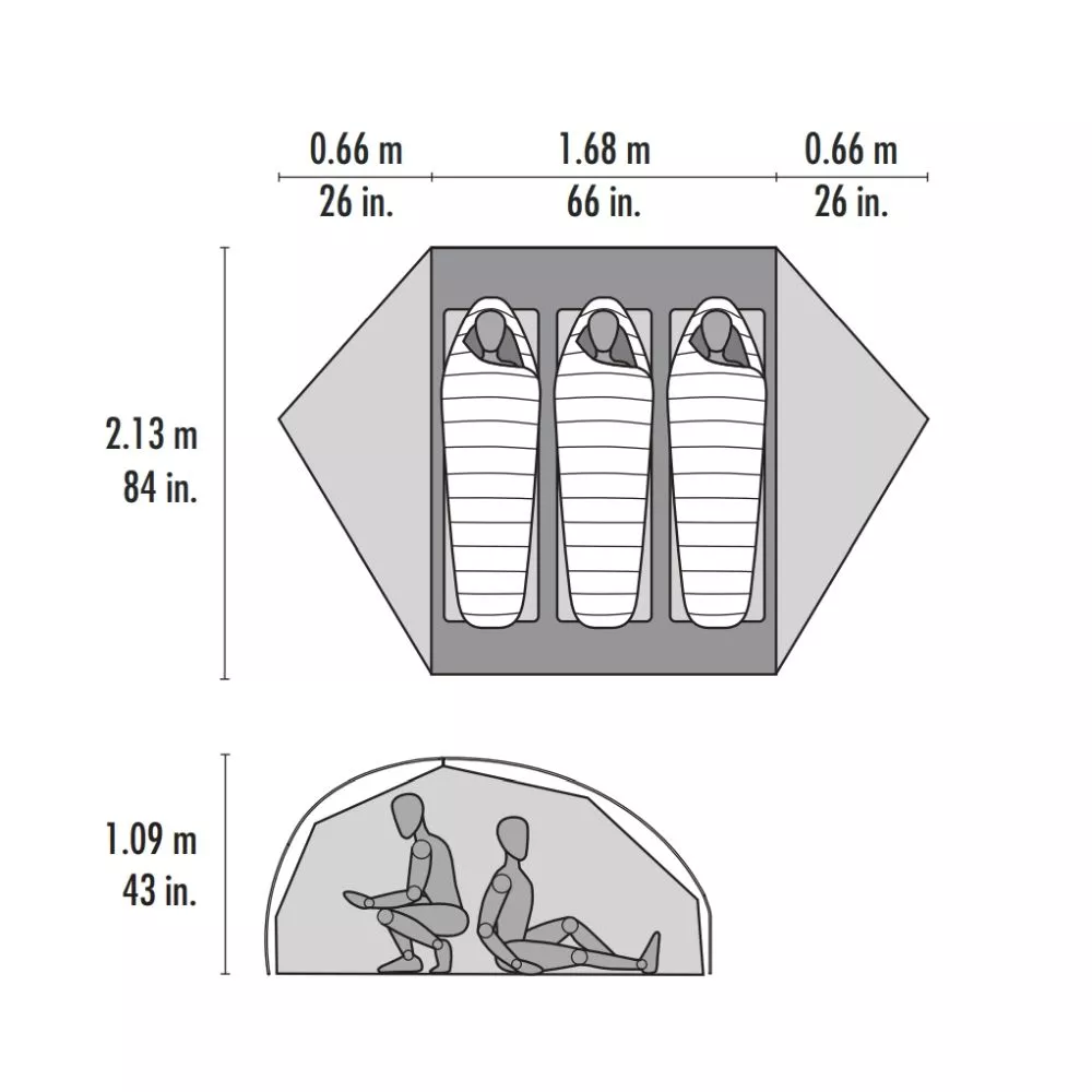 Das Leichtgewichtzelt FreeLite 3 Zelt von MSR bietet eine freistehende Konstruktion mit einem grossen Platzangebot. Der Raum in der Schlafkabine bietet optimal Platz und bietet darüber hinaus noch zwei separate Eingänge mit jeweils einer Apside um das Equipment unterzustellen.