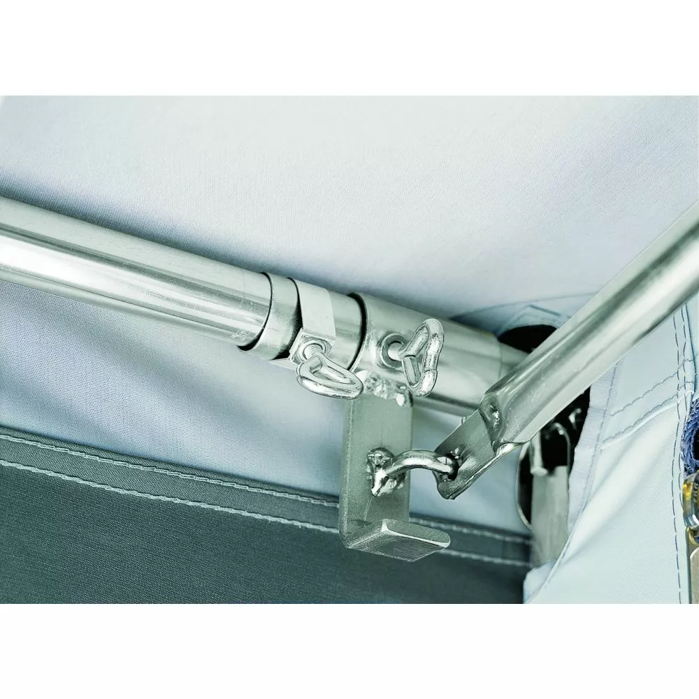- Spezialadapter und Giebelstangen sorgen für eine optimale Passform, geben den notwendigen Halt auch zum Vorzelt