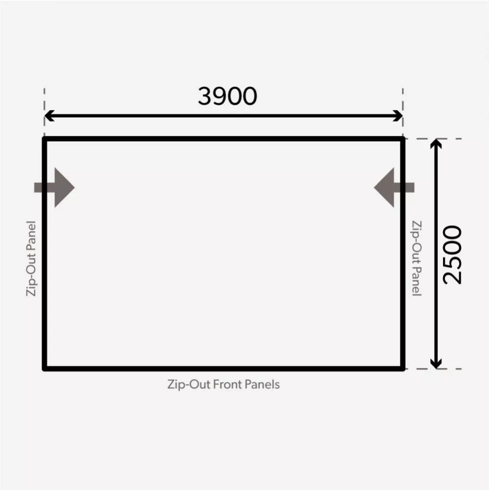 Die Seitenteile sind mit Reissverschlüssen versehen, um einen optionalen Seitenanbau zu befestigen oder um die Seitentüren zu drehen. Ausserdem können die Frontteile seitlich weggerollt werden, um die Frontwand öffnen zu können. So kannst du immer genügend Frischluft ins Vorzeltinnere lassen.