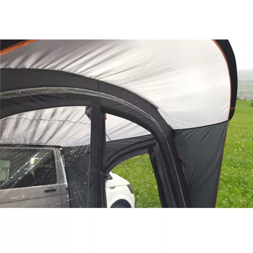 Das feste Vordach schützt vor schlechtem Wetter und bietet bei Sonne ausreichend Sonnenschutz. Das Eurotrail Sienna ist das ideale Vorzelt für Wochenendreisen und Kurzurlaube.